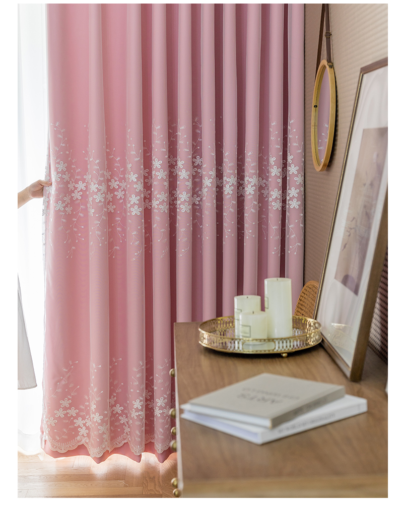 飛爾歌徳(FG)現代簡単で純色の綿麻の木目は全遮光カーテンリビングルーム書斎;床に置くカーテンの完成品の無色のカーテンはピンク色のカーテンをカスタマイズします。幅3メートル*高さ2.7メートル-フック式の一枚です。