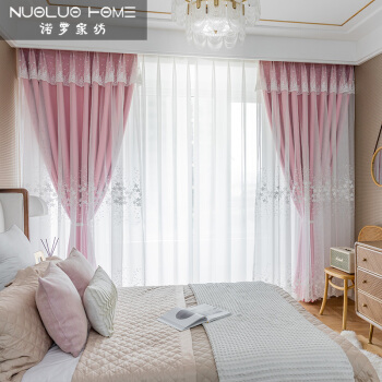 诺罗 公主风窗帘网红款双层布纱一体粉色幸运草韩式女孩窗帘遮光布遮阳卧室全遮光 布纱一体幸运草四爪钩款 宽3米*高2.5米/1片【图片 价格 品牌 报价】-