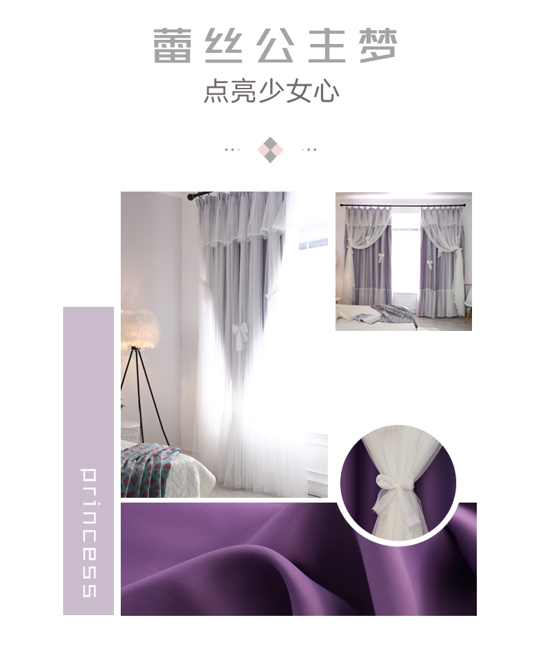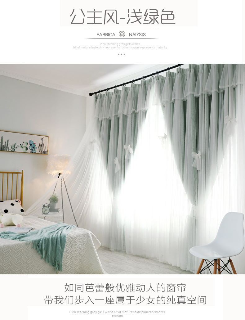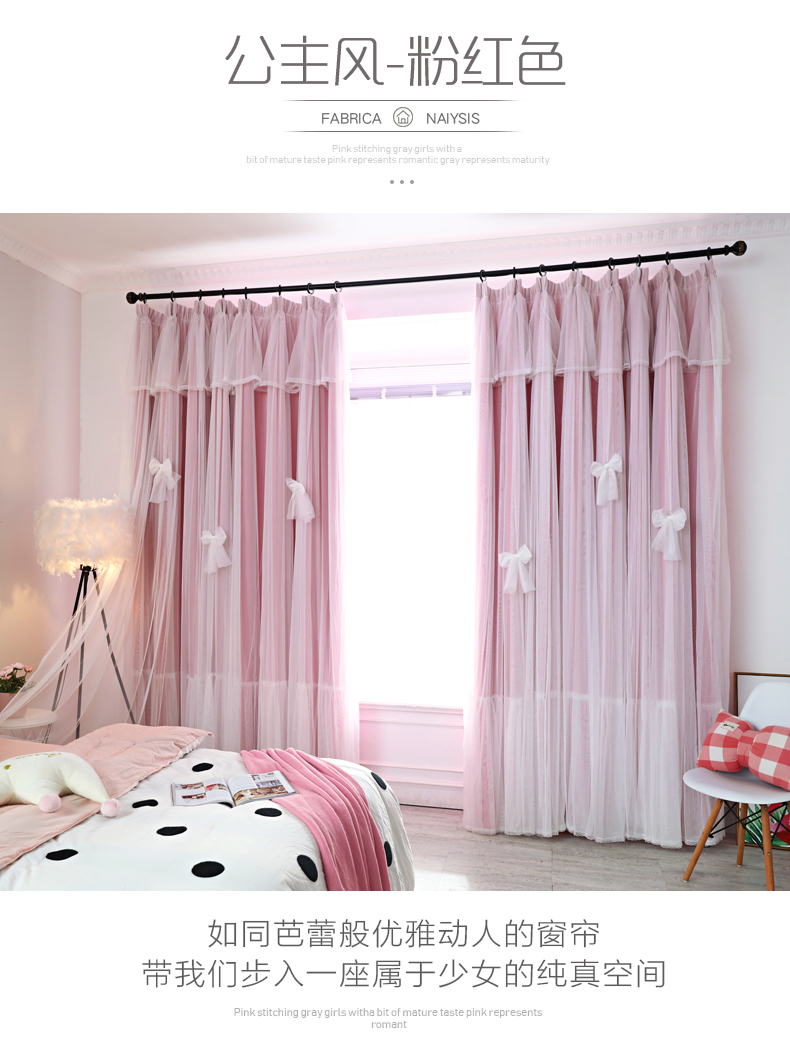女孩房间窗帘韩式粉色网红窗帘卧室少女心ins公主风成品遮光儿童飘窗双层纱帘 粉红色【布+纱三层】 【挂钩加工】每米【图片 价格 品牌 报价】-