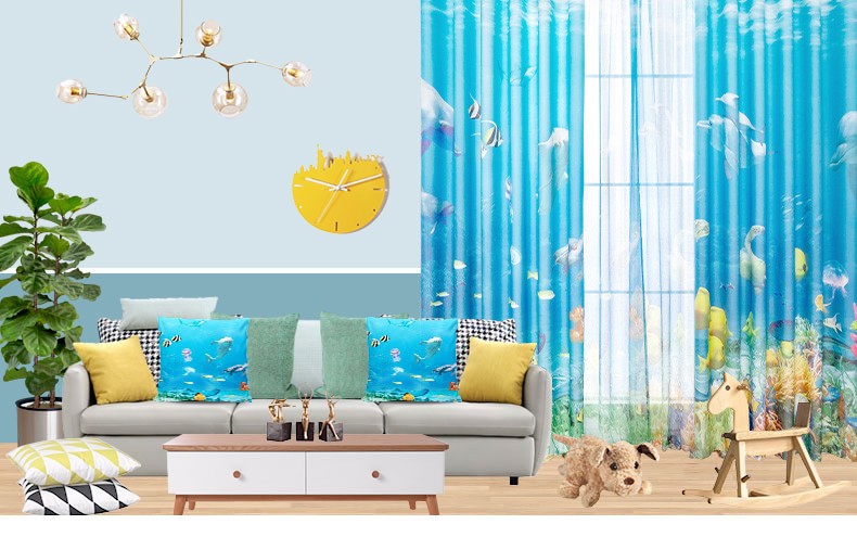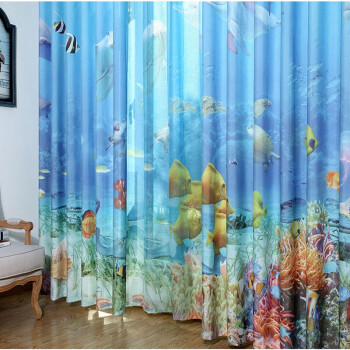 黛菲娜 儿童房窗帘男孩卧室落地飘窗窗帘蓝色地中海海底世界窗纱帘 6953-同款纱帘-【挂钩】/【打孔】 定制1米用料价【联系在线客服】【图片 价格 品牌 报价】-
