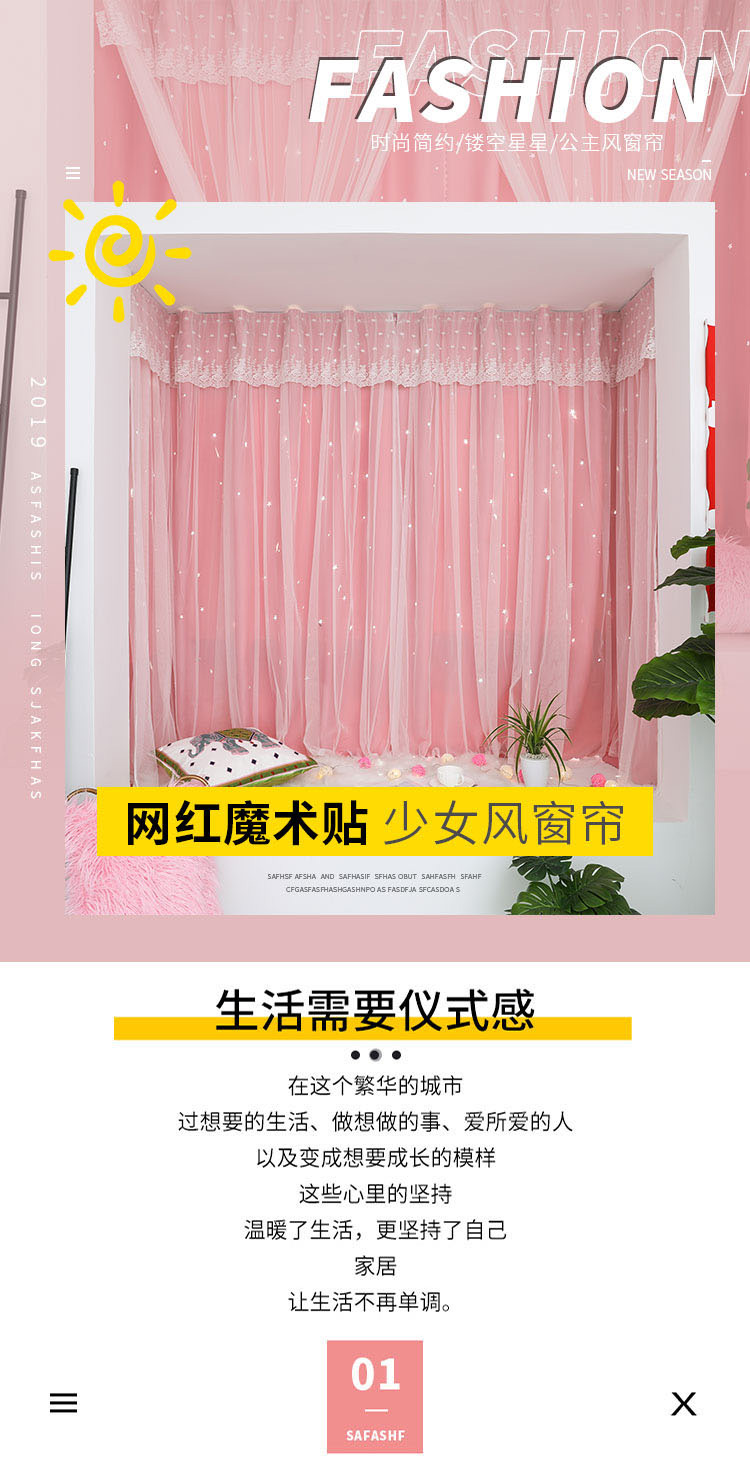 窗帘网红款免打孔安装直播背景抖音双层魔术贴粘贴式简约宿舍遮阳房间卧室窗纱成品窗帘定制顾致 米色(蕾丝帘头布+纱双层一体) 平铺2宽*2高魔术贴一片