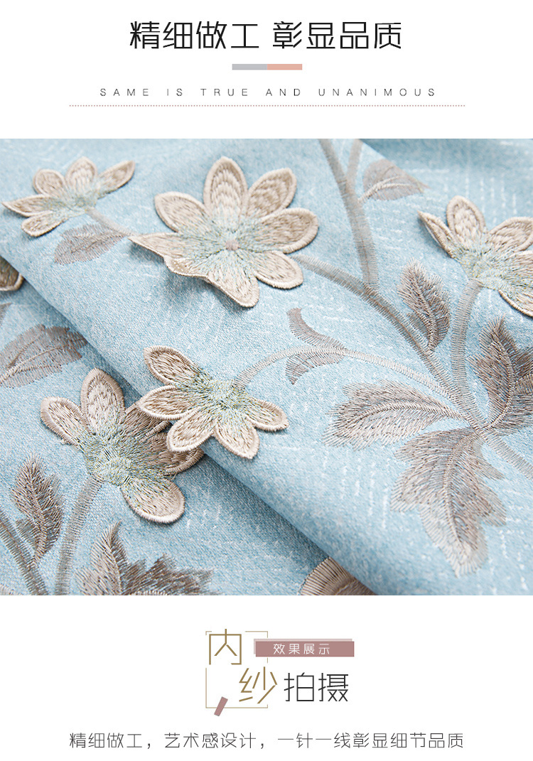 金蝉カーテン完成品カスタム田園浮彫刺繍リビング書斎遮光カテキン生地郎春花郎春花-法布里克生地帘0.1米補拍