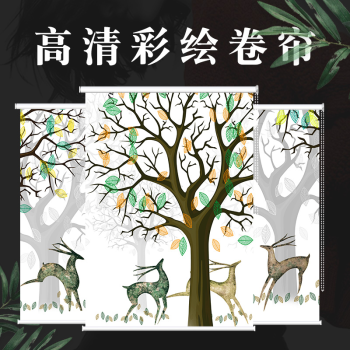 克里斯汀卧室遮光窗帘办公彩绘卷帘 遮光卷帘 家居卫生间厨房防水阳台拉式升降免打孔卷帘 全遮光