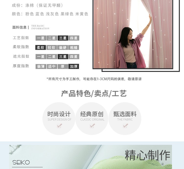 堇喜网红魔术贴隔热防晒遮光窗帘简约卧室阳台飘窗简易免打孔黏贴 桃粉色(配纱配帘头) 宽1.2高1.8一片【图片 价格 品牌 报价】-