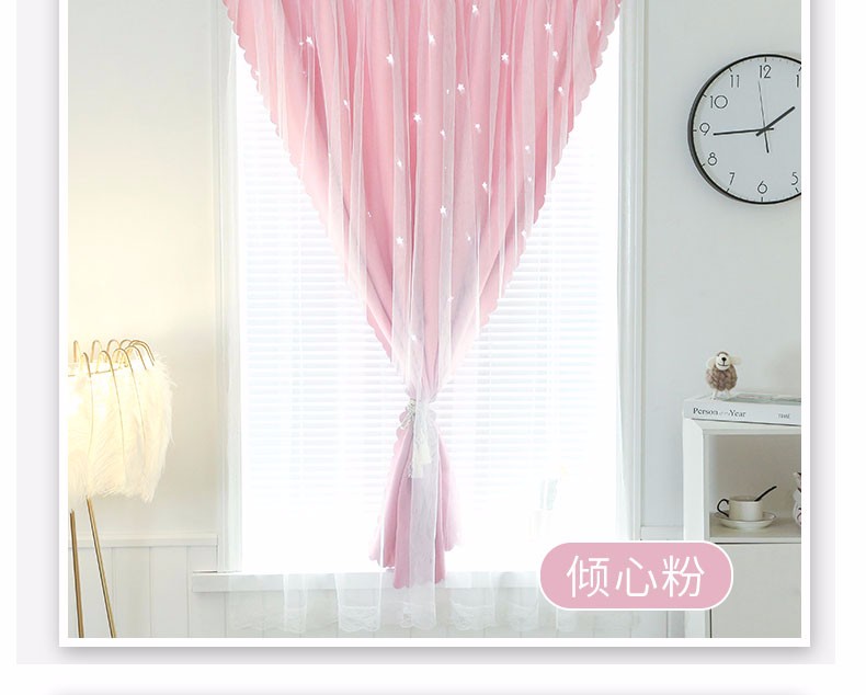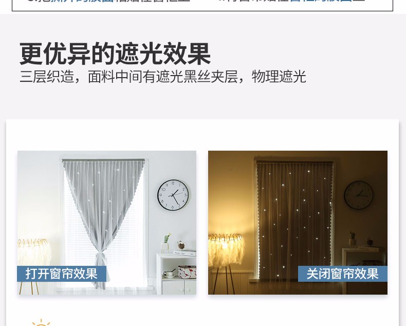 镜集营 窗帘免打孔 魔术贴窗帘 双层遮光窗帘免打孔遮光ファブリック生地简易卧室飘窗出租房厨房小窗帘短帘遮阳ファブリック生地 灰色缕空星星 宽1.5x高1.8米