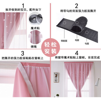 诺罗 镂空星星简易窗帘布纱一体式 简约现代免打孔安装魔术贴小窗帘成品公主风出租房网红ins风短帘 天蓝色免打孔(布纱一体) 宽1.5米*高2米/1片【图片 价格 品牌 报价】-