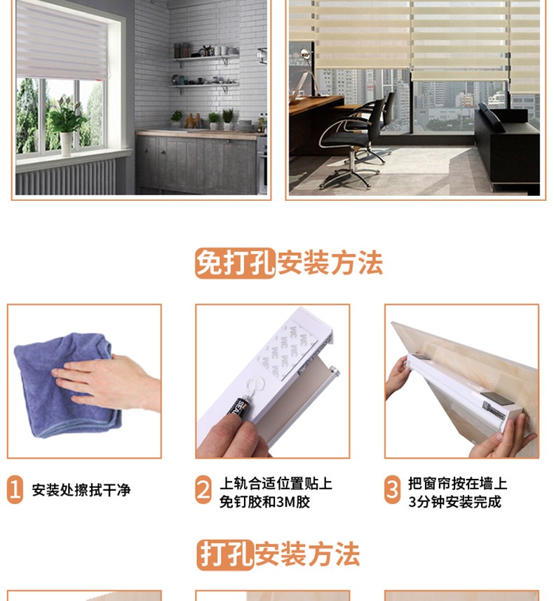 【亨尚】简约现代百叶窗帘遮阳遮光双层柔纱帘防水卷帘窗帘办公室客厅卧室厨房卫生间免打孔窗帘 经典配置米白色F4A【图片 价格 品牌 报价】-