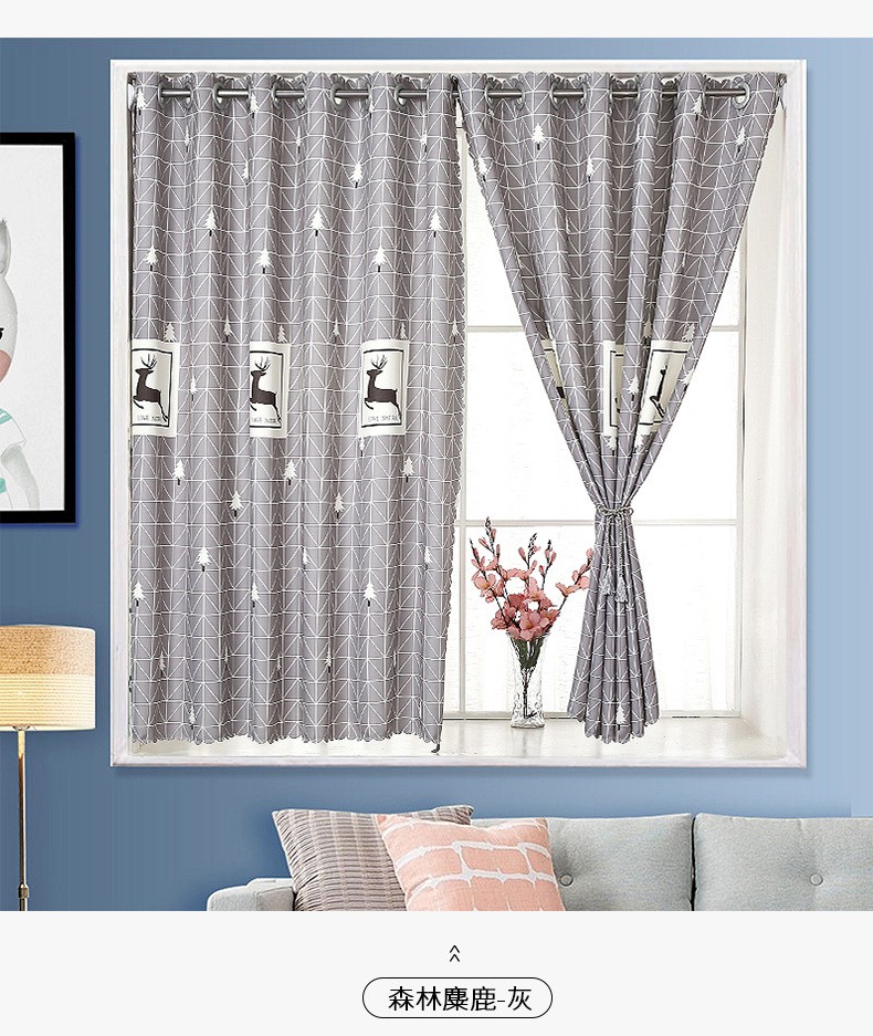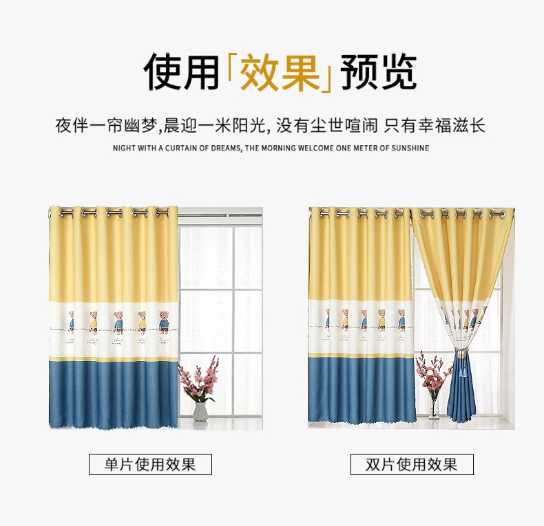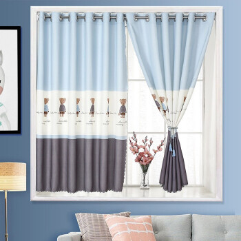 【窗帘+伸缩杆】和居家 出租房成品窗帘免打孔简易免安装全遮光小窗户飘窗现代简约遮阳短帘 小熊-兰色 宽1.0米*高1.5米(配伸缩杆)