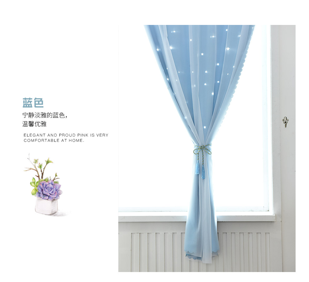 诺罗 镂空星星简易窗帘布纱一体式 简约现代免打孔安装魔术贴小窗帘成品公主风出租房网红ins风短帘 粉色免打孔(布纱一体) 宽1.5米*高2米/1片