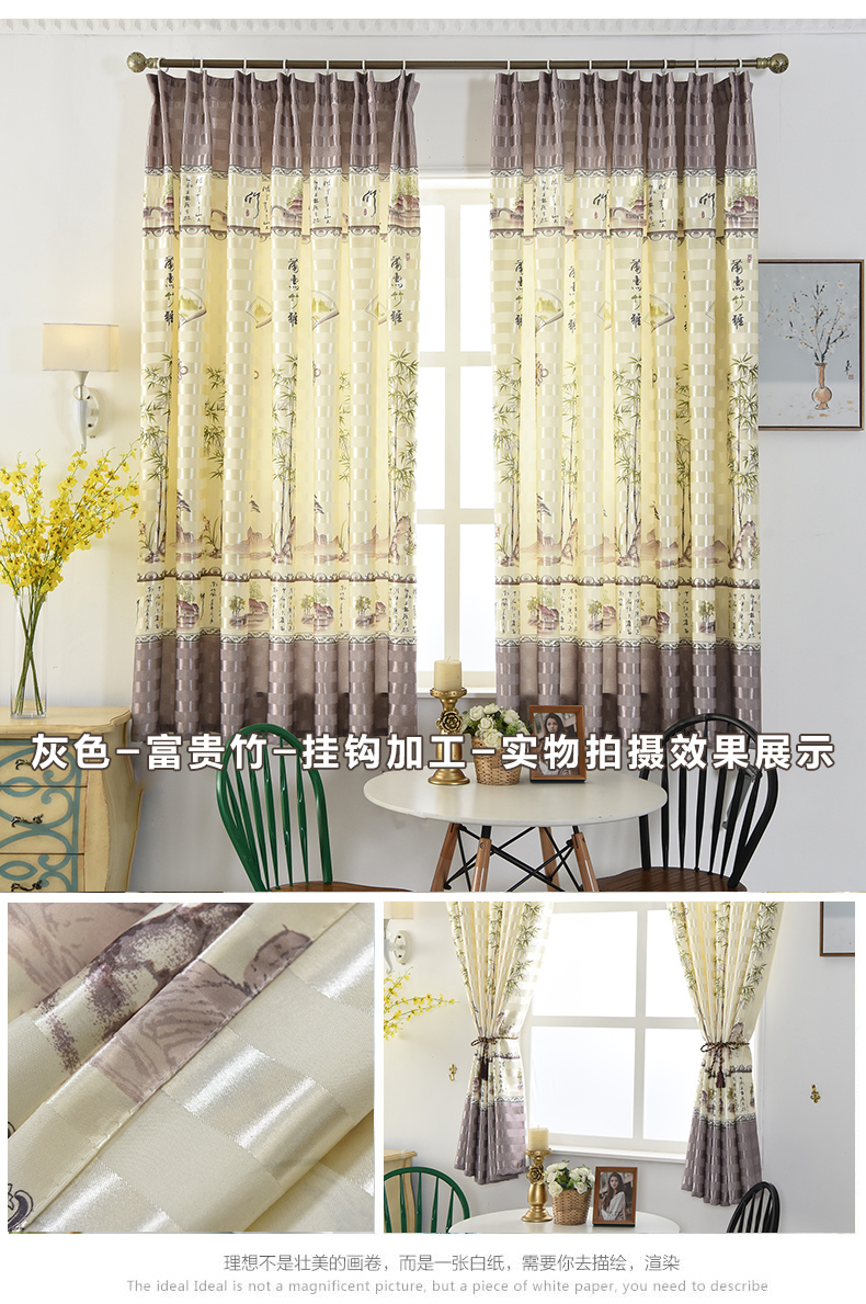 叶语香澜 田园窗帘成品飘窗短帘半遮光布卧室隔音半帘定制 富贵竹-绿 宽1.5*高2.0挂钩款一片【图片 价格 品牌 报价】-