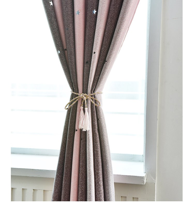 诺罗 镂空星星渐变现代简约ins网红公主窗帘高遮光北欧客厅卧室少女飘窗短帘 粉灰镂空普通挂钩 宽1.5米*高2米/1片