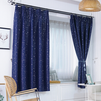 沫梵 遮光窗帘布成品短帘客厅卧室飘窗 星星-藏蓝色 1.5宽X2.0高.挂钩式1片