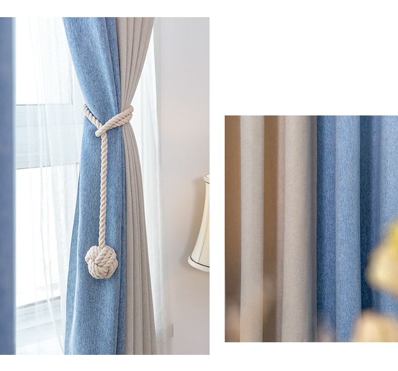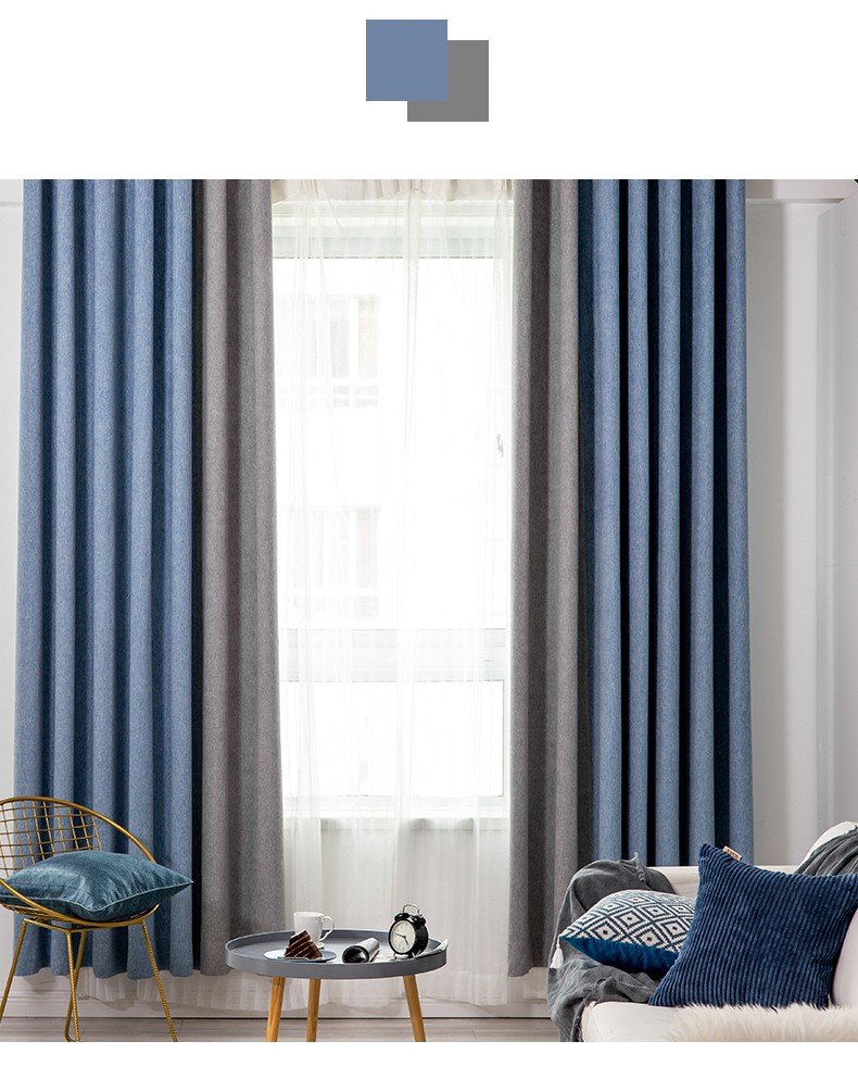 锦色华年 物理遮光窗帘撞色时尚北欧ins风纯色客厅卧室窗帘布高品质遮光帘成品安然窗帘挂钩打孔可定制 蓝米色 3米宽*2.6米高一片【图片 价格 品牌 报价】-