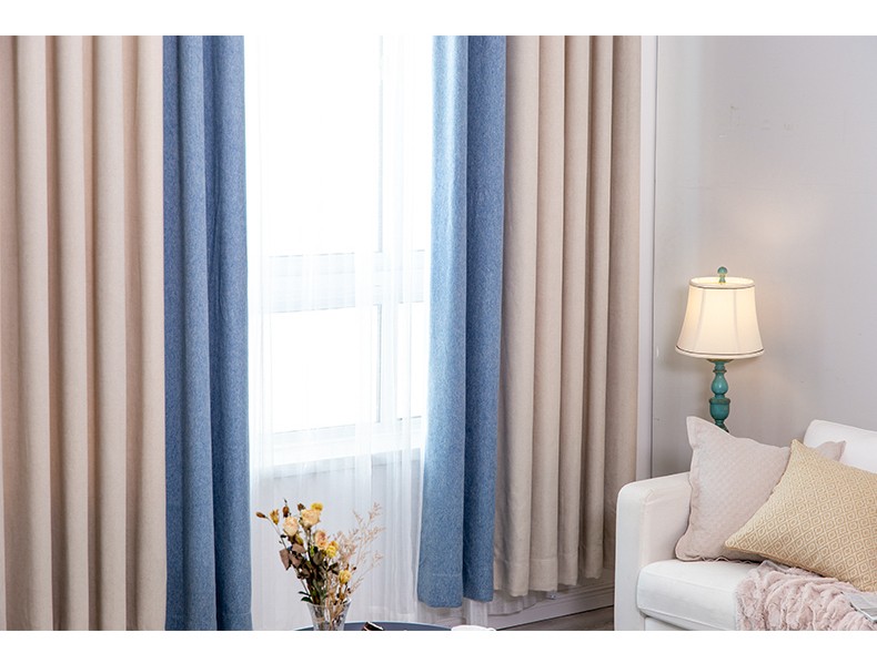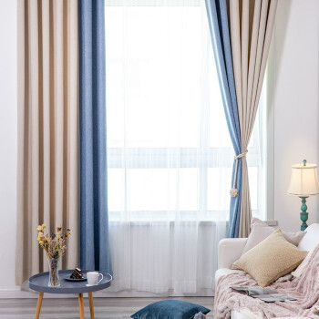 锦色华年 物理遮光窗帘撞色时尚北欧ins风纯色客厅卧室窗帘布高品质遮光帘成品安然窗帘挂钩打孔可定制 蓝米色 3米宽*2.6米高一片【图片 价格 品牌 报价】-