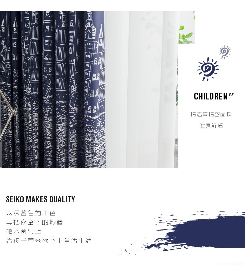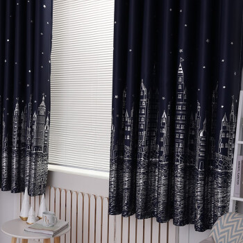 灵水绣免打孔窗帘高遮光地中海城堡印花隔音窗帘布遮阳卧室客厅阳台隔热全遮光落地窗加厚定制成品 星夜城堡窗帘 定制挂钩式1米(联系卖家)