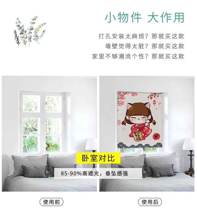 日式招财猫免打孔简易窗帘布租房小窗帘魔术贴窗帘简约现代遮光帘卧室飘窗试衣间卫生间厨房隔断帘 E0548-富士山下 宽1.0米高1.5米一片【图片 价格 品牌 报价】-