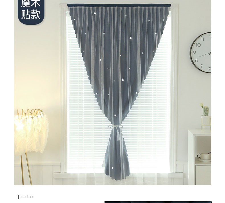 HOUSEGO 魔术贴窗帘 免打孔安装 卧室飘窗自粘遮阳纱帘粘贴式遮光布网红款 镂空星星清新绿(布纱一体) 宽0.9米*高1米(魔术贴款)【图片 价格 品牌 报价】-