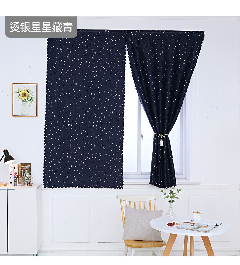 诺罗 简约现代全遮光窗帘深蓝色星星烫银儿童房卧室飘窗出租房短帘成品防晒 深蓝烫银普通挂钩 宽1.5米*高2米/1片
