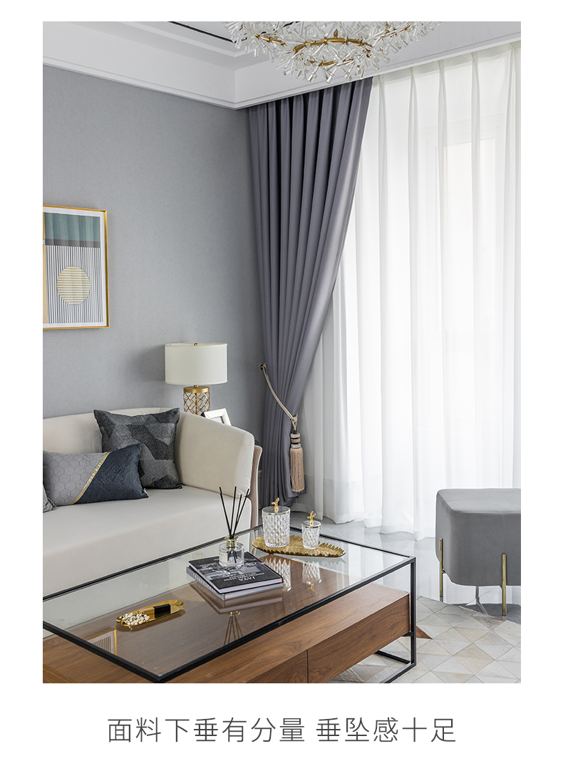 诺玲诺佳 高精密全遮光窗帘 夏季隔热窗帘成品加厚家用酒店防晒布防紫外线 高精密灰色布四爪钩款 宽2.5米*高2米/1片