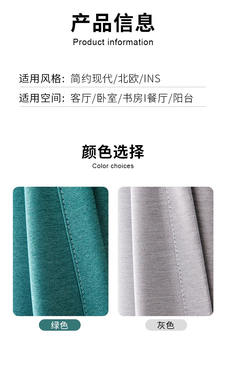 黛菲娜カーテンの完成品北欧スタイルは簡単で現代的な遮光に厚い窓紗のカーテンを厚くして、熱を遮断するリビングルームの布地8518-半遮光布-打孔完成品の幅は1.9*2.7メートルの高さ*1枚(高可改)