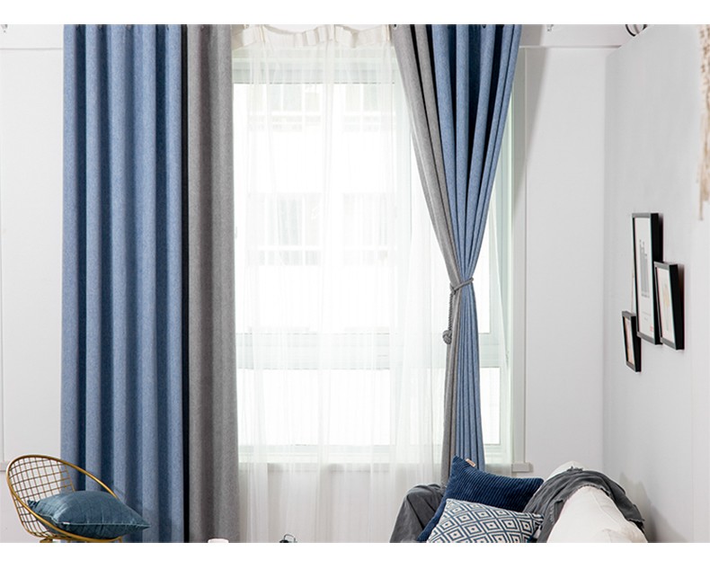 锦色华年 物理遮光窗帘撞色时尚北欧ins风纯色客厅卧室窗帘布高品质遮光帘成品安然窗帘挂钩打孔可定制 蓝米色 3米宽*2.6米高一片【图片 价格 品牌 报价】-