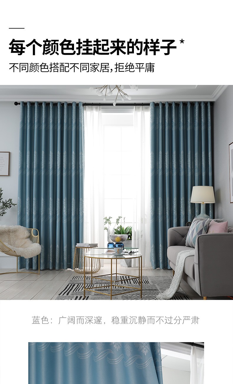 全遮光隔热窗帘北欧简约避光挂钩式窗帘布2020新款卧室阳台遮阳布 竹节小树-蓝 宽1.5米X高2.7米(挂钩式一片)
