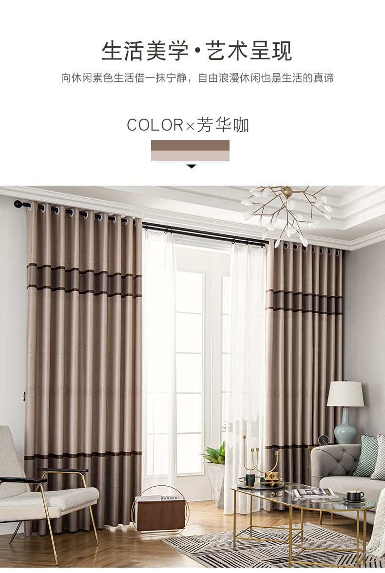 飛爾歌徳(FG)現代簡約水杉印模様の遮光カーテンリビングルームの書斎バルコニーの床にあるカーテンのカーテンをカスタマイズしてカーテンをつなぎ合わせます。幅3 m*高さ2.7 m-フック式の一枚です。