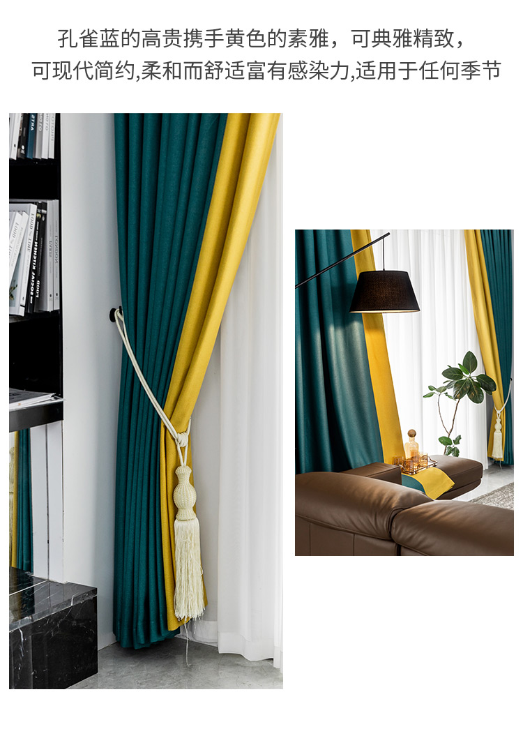 铭聚布艺窗帘遮光北欧轻奢窗帘布简约现代卧室客厅加厚定制拼接窗帘成品 蒂芙妮孔雀兰+黄色拼接 定制挂钩式 1米定制【图片 价格 品牌 报价】-