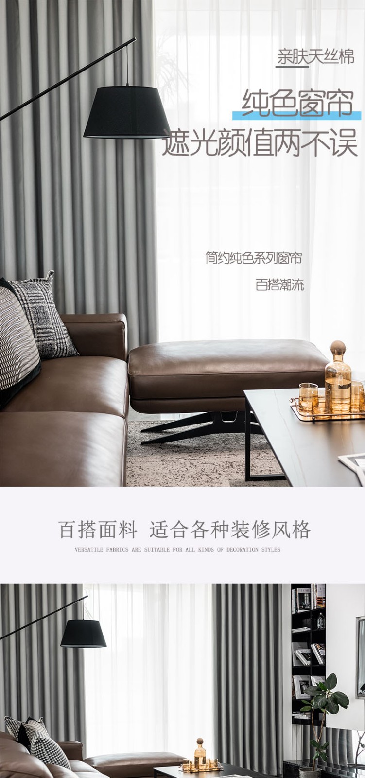 黛菲娜カーテンの完成品北欧スタイルは簡単で現代的な遮光に厚い窓紗のカーテンを厚くして、熱を遮断するリビングルームの布地8518-半遮光布-打孔完成品の幅は1.9*2.7メートルの高さ*1枚(高可改)