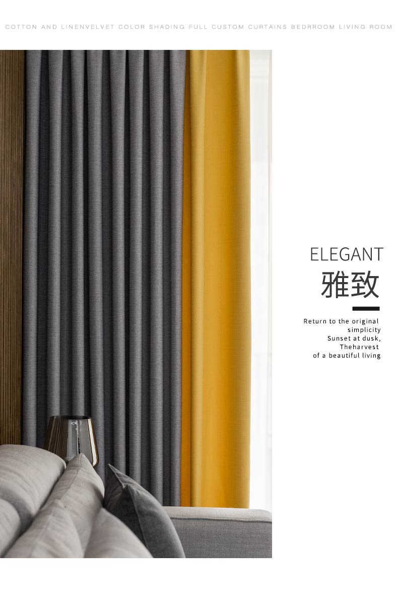 铭聚布艺窗帘遮光现代简约隔热防晒定制卧室客厅窗帘成品布料遮光阳布 雅典格灰色+黄色 挂钩式1米定制