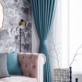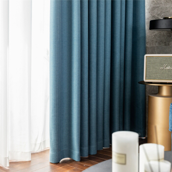 绣景 定制窗帘成品遮光现代简约北欧轻奢遮阳客厅棉麻卧室隔热防晒2020新款流行布 湖水蓝 四爪钩款 宽3米*高2.6米 1片