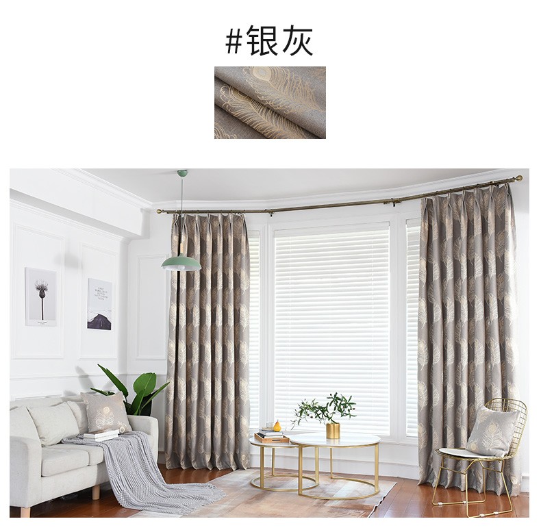 金蝉 窗帘简欧中式提花遮光窗帘布客厅卧室挂钩窗帘成品 尊贵孔雀 尊贵孔雀-深灰-布帘 1米用料价格(打孔/挂钩免费加工)需要几米拍几件