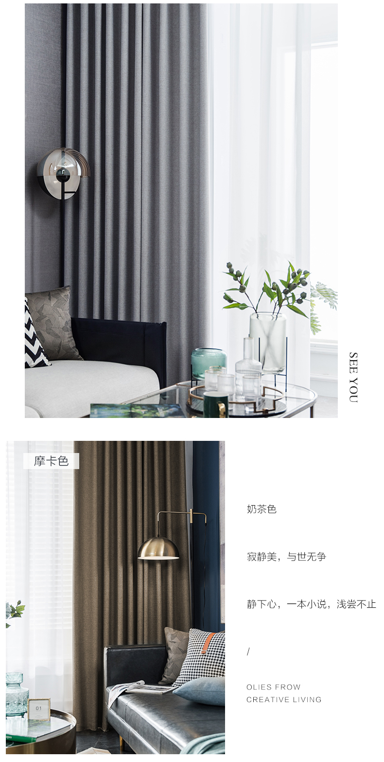 【5折】乐巢窗帘 高遮光北欧简约仿麻窗帘布 卧室阳台客厅挂钩打孔定制贝诗雅 店长推荐-摩卡色 (85%遮光-不含遮光布)1米宽【图片 价格 品牌 报价】-