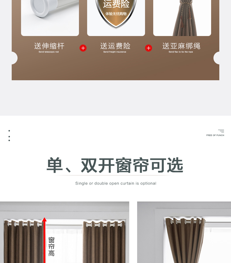 黛菲娜2020新型遮光カーテンが流行している北欧風のモダンでシンプルで豪華な客間の全遮光布地の寝室の窓紗のカーテン9858-半遮光布-穴あけの完成品の幅2.4*2.7メートルの高さ*1枚(高可改)