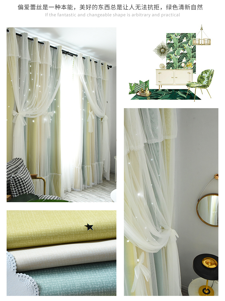 圣利进飘窓寝室のカーターテン完成品暖かい高级姫风全遮光リビング韩式田园レース梦幻レレスピンク【フック】1.5×2.7メートル/枚【写真価格ブランド見積】-
