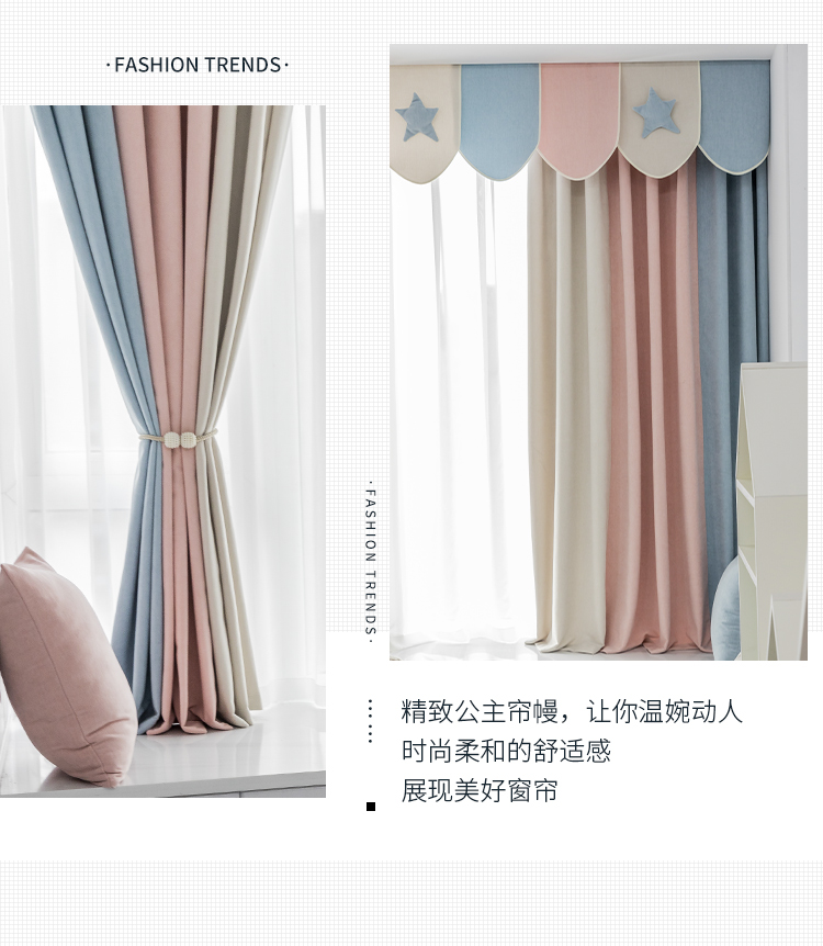 | 商品名称 | 芸窓2020年新式三色スプライス北欧簡約現代プリンセス風の翻り窓全遮光リビングルームの子供部屋カーテン寝室北欧風小清新シージェニ・ルーテル厚いファブリック星雲(青い粉の米)カスタム打孔または韓式Sフック/m |