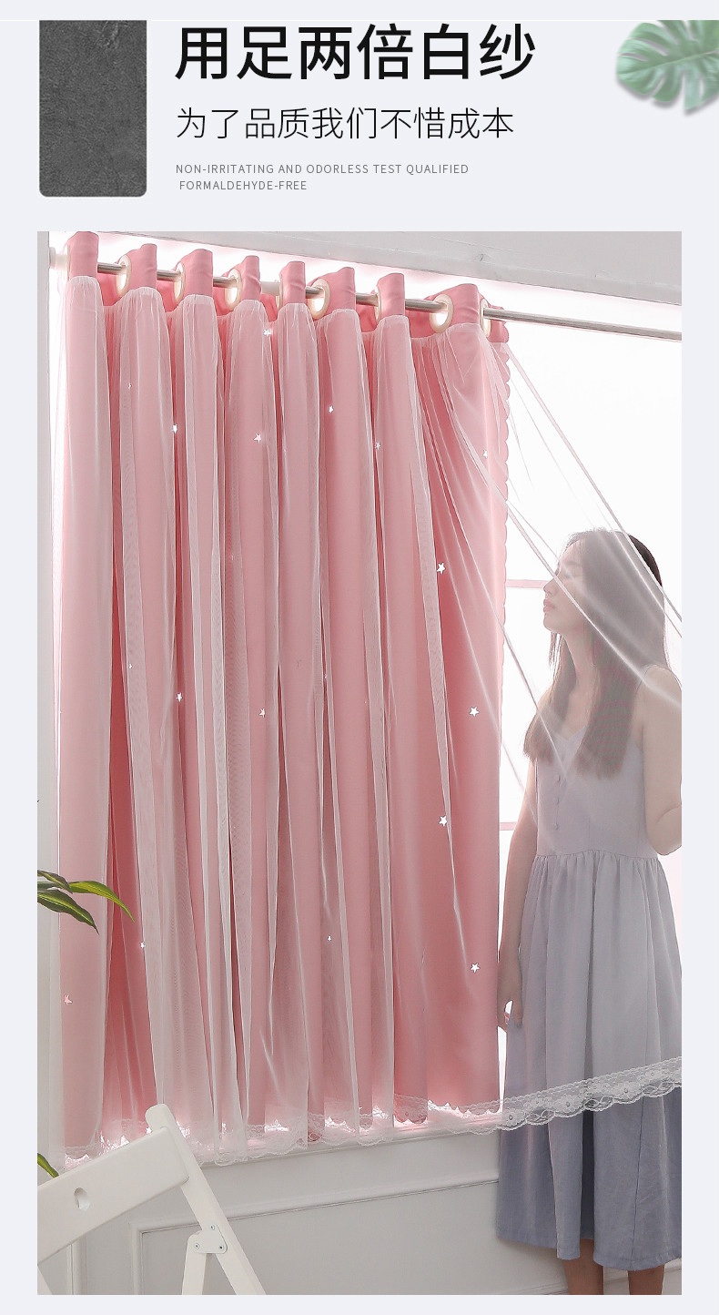 簡易カーテンの完成品は穴付き伸縮棒付震音ネットの赤い全遮光ファブリック生地を簡易に設置して寝室の穴なしカーテン伸縮棒セット小部屋の窓の短い幅は1.0です。×高さ1.0枚『竿長0.5-0.6メートル』ピンクファンブレット生地密着星(伸縮棒)