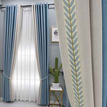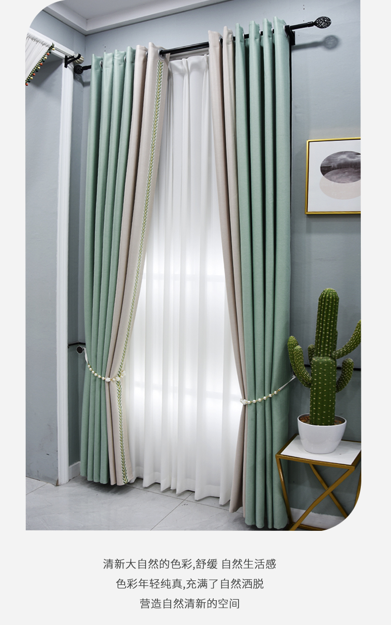 リービングリム北欧風の遮光が簡単で、北欧風の寝室遮光が小さい清新なアメリカ式のスプライングリーンカーテン2021年新式客間の湖と緑の色を合わせて3メートルのフューエル生地のカーテンを開きます。高さ2.7(1.2 m≦レール長≦1.に適用します。