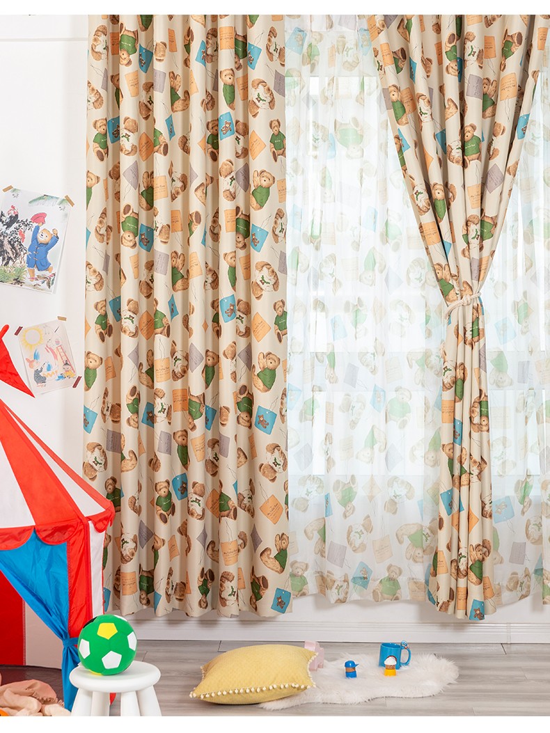 金蝉カーテン穴なしマジック贴り付け简易カーテンファブリック生のリビングルーム漫画プリントins风地背景ファブリック生の怠け者熊の1.2メートル幅*1.8メートル