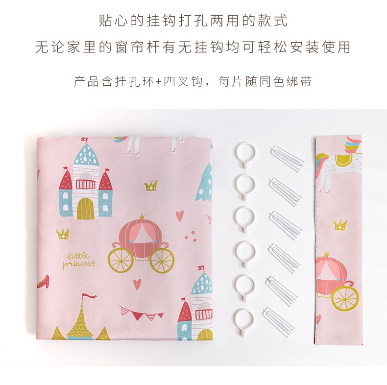 锦色华年 儿童房窗帘卧室高品质ファブリック生地艺遮光帘 女孩男孩漫画のカーテン成品挂钩打孔式 客厅飘窗帘 可定制 粉色【公主城堡】挂钩式 定制每米(请联系客服)