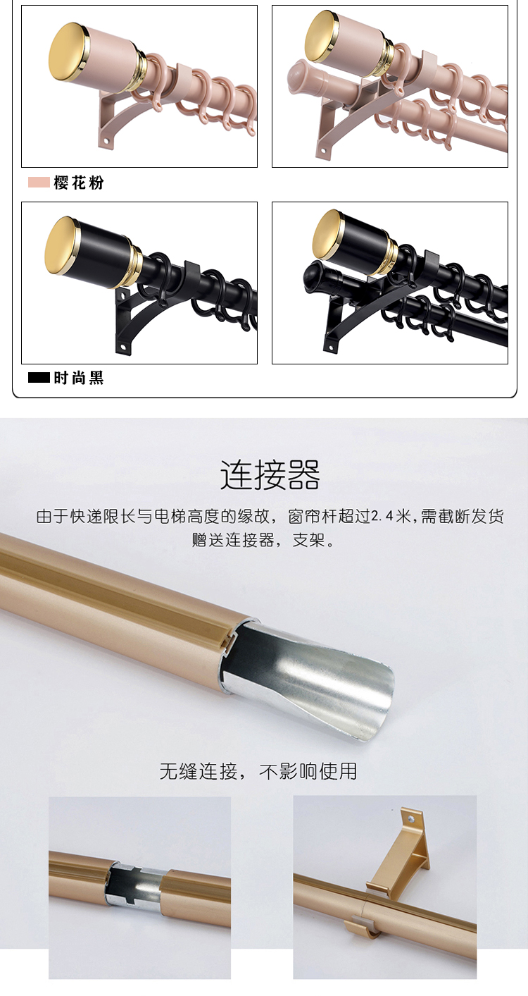 巧耐 轻奢风窗帘杆 静音加厚铝合金罗马杆窗帘打孔挂钩轨道 单杆双杆顶装墙装打孔窗帘轨 窗帘配件 摩卡蓝 单杆 要几米拍几件【图片 价格 品牌 报价】-