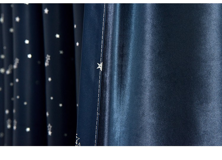 诺罗 简约现代全遮光窗帘深蓝色星星烫银儿童房卧室飘窗出租房短帘成品防晒 深蓝烫银普通挂钩 宽1.5米*高2米/1片