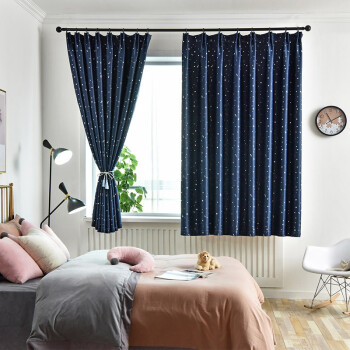诺罗 简约现代全遮光窗帘深蓝色星星烫银儿童房卧室飘窗出租房短帘成品防晒 深蓝烫银普通挂钩 宽1.5米*高2米/1片【图片 价格 品牌 报价】-