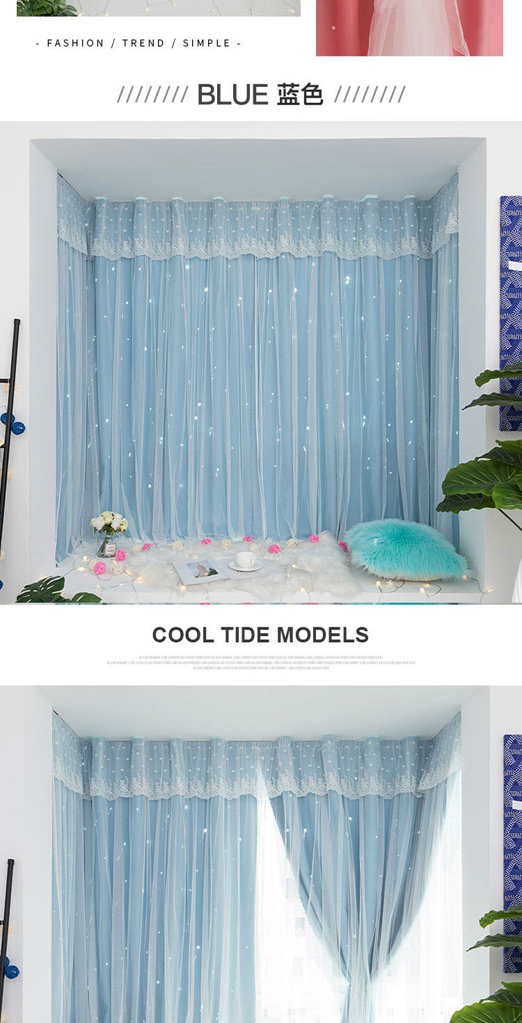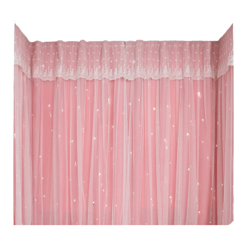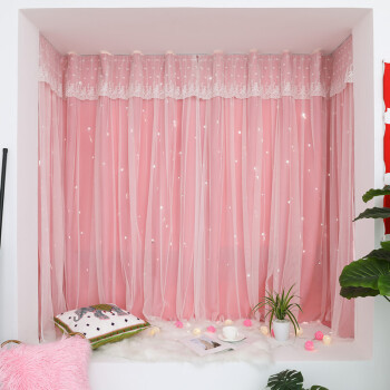 澜法布里克生地坊カーテン网红款免打孔取付生放送背景震动双层魔术贴贴式简约寮日よけ部屋寝室窓雷斯既製卡丁カスタマイズ顾致ピンク(レースカーテン粉布里克生地+雷斯双层一体)每米魔术贴含加工费(法布里克生地雷斯一体)