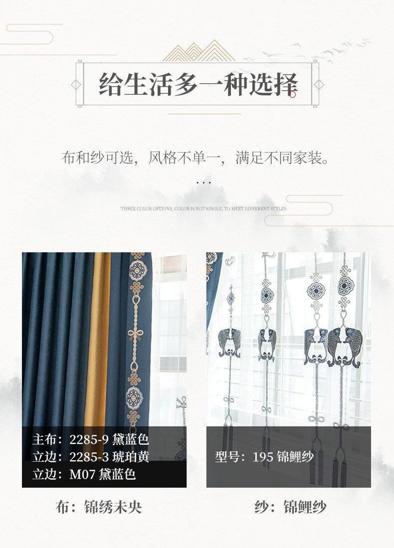 金蝉高遮光カーテン新中国式客间书房刺繍レース継ぎ目カーテンファブリック生地寝室锦繍未央锦繍未央(継ぎ目金)0.1メートル用料补拍【图片价格品牌报价】-