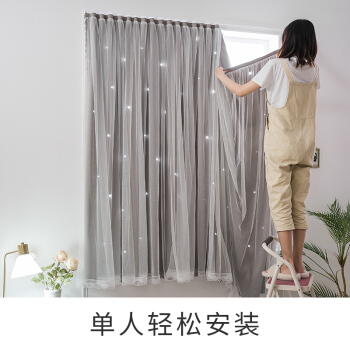 | 商品名称 | ネット赤遮光ファブリック生のマジック貼り付け式カーテン寝室穴あけなし取付小窓短自粘部屋取付幅0.7×高さ1.0ピンク(マジック透かし星) |
