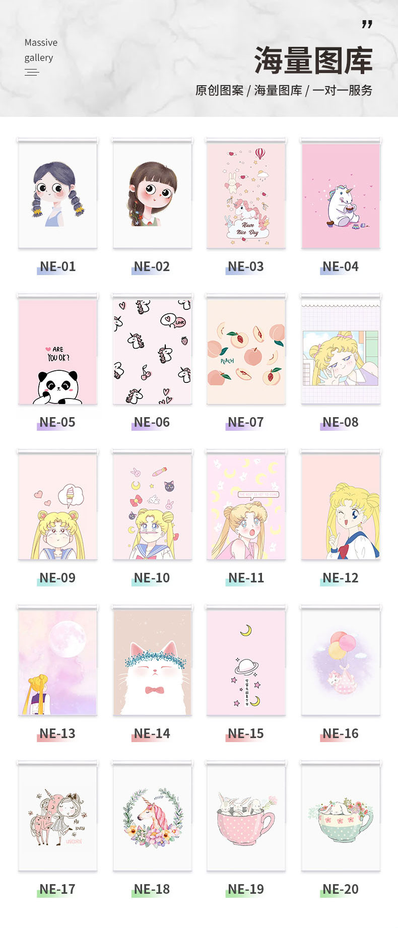 玄雅児童房カーテン女孩风卡通寝室遮光免打孔遮阳防晒升降帘NE-03【写真価格ブランドオファー】-