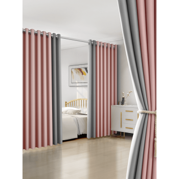 2021年新款客间新款-粉拼灰-95%遮光适用壁幅3.6-4.1 m【帘高2.7 m】*2片-伸