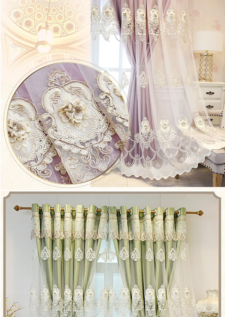 OCGヨーロッパ式カーテンリビング二層豪華刺繍厚めシェニール窓レーザー刺繍遮光床窓カスタマイズ完成品金玉満堂二層金色打孔2メートルカスタマイズ幅、高さ2.7可改