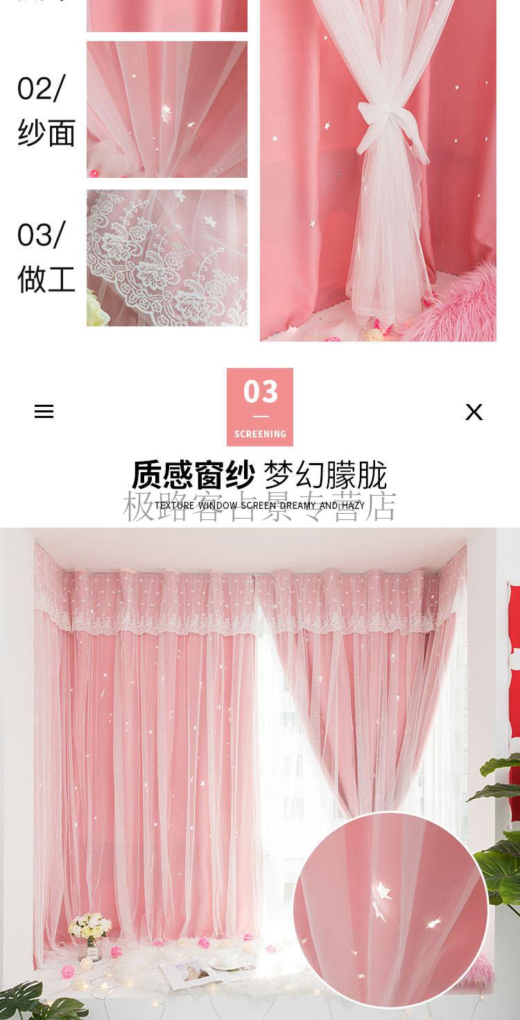 极路客窗网红款免打孔安装生中継背景震音双层魔术贴贴贴式简约寮日よけ部屋の寝室窓ガラスガラス既製カートンカスタムピンク(レースカーテン先ファブリック生地+レース二层一体)毎米魔术贴含加工费(ファブリック生地一体)